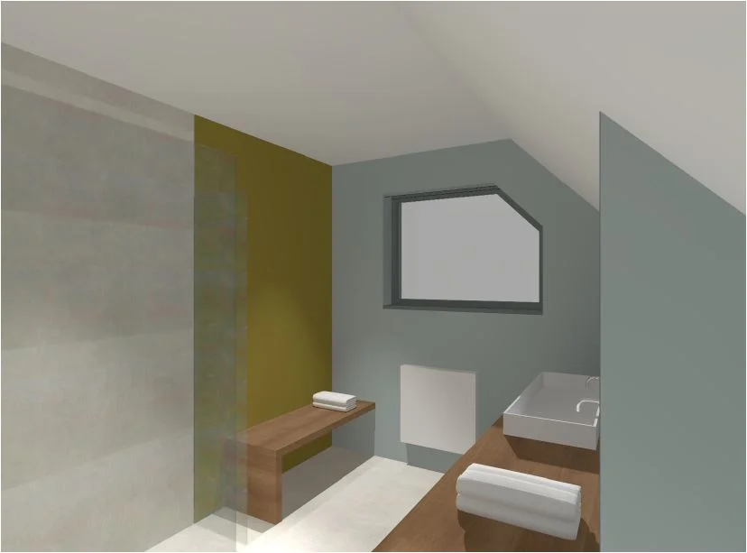 Een jaar na het opleveren van de leefruimte was het de beurt aan de badkamer. De verouderde lay-out en kleuren werden volledig weggehaald. Er werd een nieuwe functionele ruimte gecreëerd met mooie accenten.